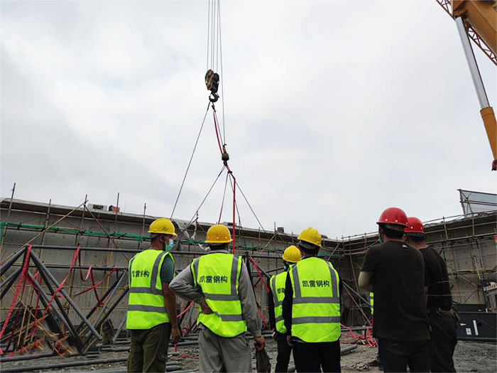 4、球形网架支座预埋件安康施工时应采取措施,保证预埋件的位置、标高及平整度的准确。